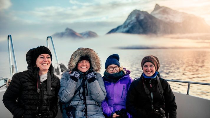 Vi glider lydløst gennem det klare vand, med byen bag os og naturen foran – kun ledsaget af bølgernes skvulpen og fuglenes kald. Med lidt held, afhængigt af årstiden, kan vi være så heldige at få øje på pukkelhvaler, sæler eller havørne, der kredser højt over fjeldet.