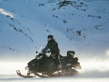 Med dine nyerhvervede, grundlæggende kørselsfærdigheder kan du trygt begive dig i baglandet. Turen dertil er hotellets mest populære snescootertur, fordi den har lidt af det hele. På turen kører du på lange strækninger, på mindre stigninger og på spor i moderat tempo gennem naturskønne stier ind til bjergene.