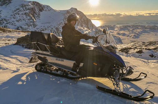 Terrænet er bakket og har gode nedkørsler og stigninger. Udover følelsen af spænding og frihed, mens du kører snescooteren gennem den kølige luft, er det absolutte højdepunkt på turen den spektakulære udsigt over Davidstrædet og den endeløse udsigt over det barske vinterlandskab fra Qerrortusup Majoriaa.